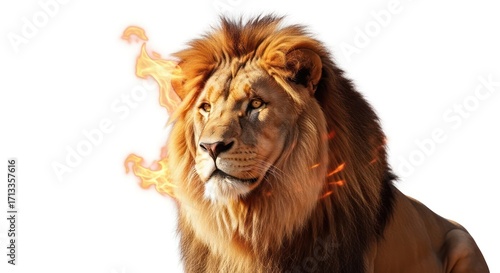 © rahma, Fototapeta premium Feline Royalty on Fire: A Dramatic Lion Portrait with Fiery Visual Effects display