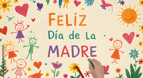 Fototapeta premium Feliz Dia de La Madre: Colorful Hand-Drawn Mother's Day Greeting