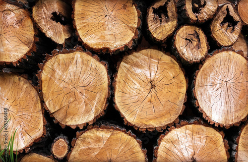 © Lumppini, Naklejka premium felled trees with knots and grass in the corner