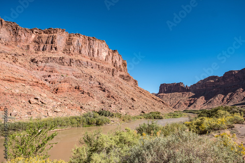 Fototapeta premium Felsenschlucht mit Fluss und Vegetation