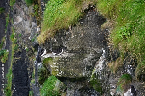 © tina7si, Naklejka premium Felslandschaft mit brütenden Möwen und Lummen auf Rathlin Island / Nordirland