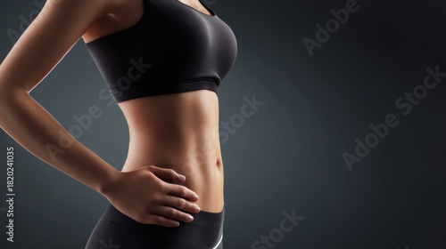 © Anat art, Fototapeta premium Female Abdomen Bending Forward Showing Natural Belly Fold in a Health-Focused Setting During an Indoor Activity