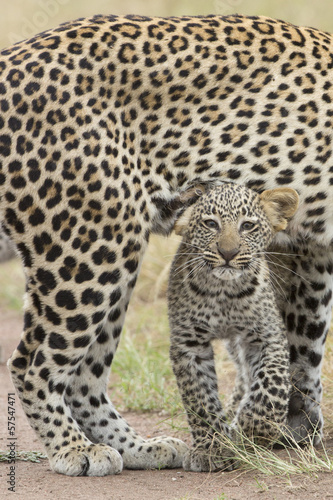 © stuporter, Obraz premium Female African Leopard walking with her small cub, Tanzania
