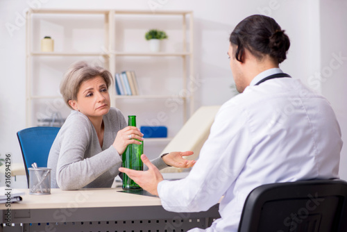 © Elnur, Fototapeta premium Female alcoholic visiting young male doctor