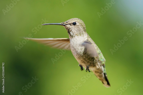 © Kit Leong, Fototapeta premium Female Anna's Hummingbird hover in air