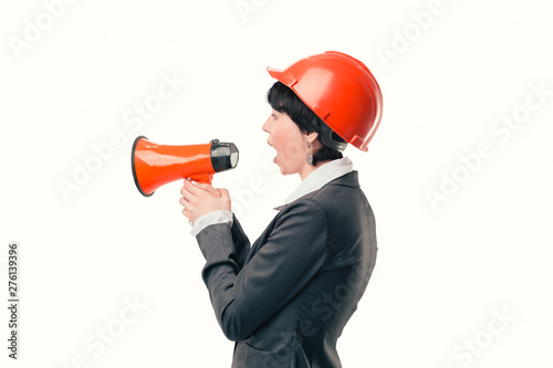Fototapeta premium female architect with a megaphone.isolated on light