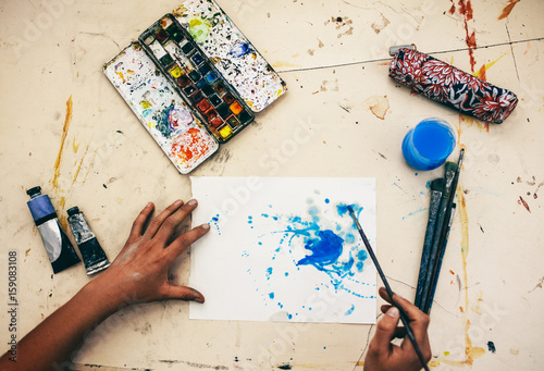 Naklejka premium Female artist drawing on paper