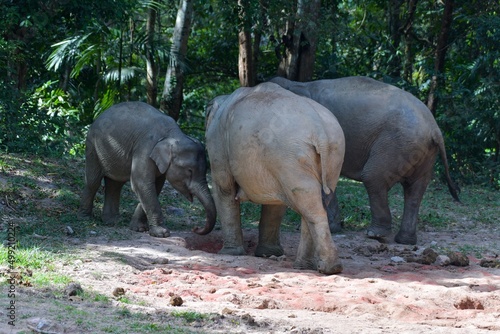 © Pluto Mc, Naklejka premium female Asian elephant gathered the crowd out to play in the soil
