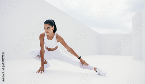 © Jacob Lund, Fototapeta premium Female athlete doing warm up exercises