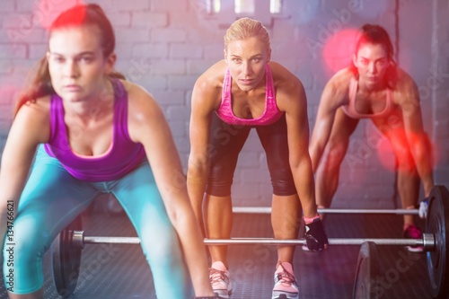 Naklejka premium Female athletes lifting barbells