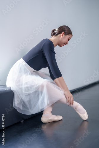 Naklejka premium Female ballet dancers rehearse in ballet classes, they practice dancing, they are professional theater actors.