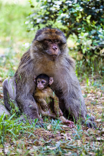 © vladislav333222, Fototapeta premium female Barbary Ape, Macaca sylvanus, with babys,Morocco