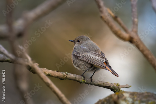 © philippe paternolli, Fototapeta premium Female Black Redstart perched on a tree branch