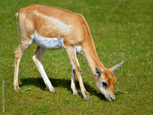 © Christian Musat, Fototapeta premium Female blackbuck (Antilope cervicapra) also known as the Indian antelope, is an antelope native to India and Nepal, grazing and seen from profile