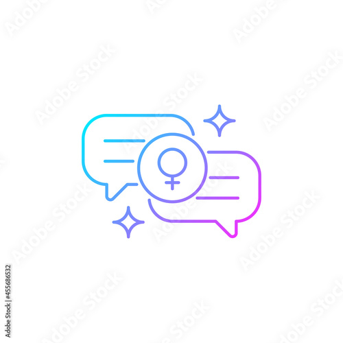 © IMG visuals icons, Fototapeta premium Female bonding gradient linear vector icon. Supportive sisterhood. Strength for feminine gender. Supporting each other. Thin line color symbol. Modern style pictogram. Vector isolated outline drawing