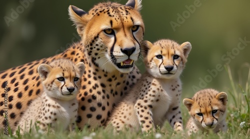 Obraz premium female cheetah with her cubs