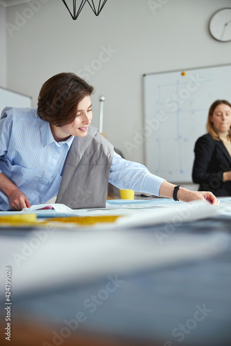 © Viacheslav Yakobchuk, Obraz premium Female clothes design student using tape measure