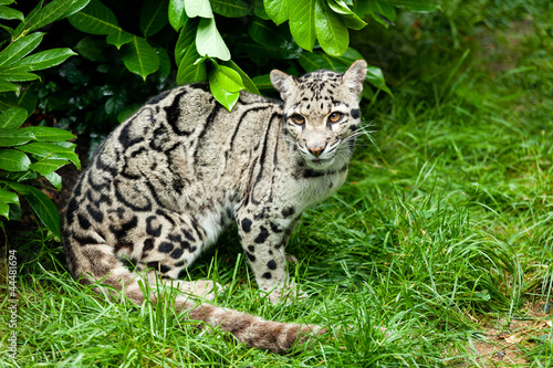 Obraz premium Female Clouded Leopard Sitting Under Bush