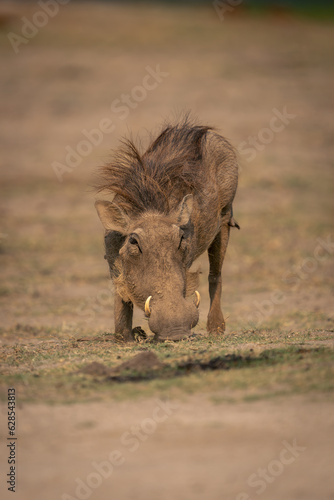 © Nick Dale, Fototapeta premium Female common warthog grazes on sandy ground