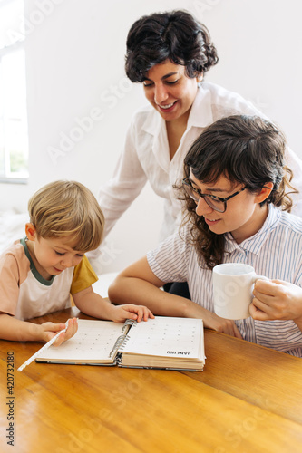 © (JLco) Julia Amaral, Fototapeta premium Female couple with son studying