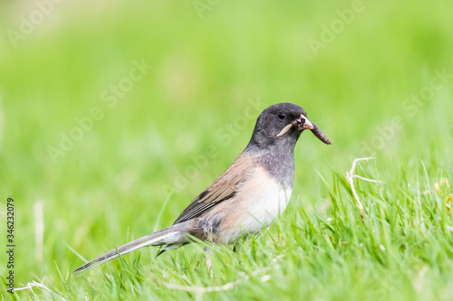 Obraz premium Female Dark Eyed Junco Collecting a Meal for her Chicks