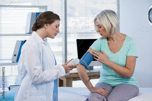 Fototapeta premium Female doctor checking blood pressure of a patient