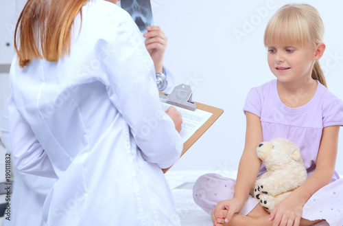 © lenets_tan, Obraz premium Female doctor examining child with stethoscope at surgery