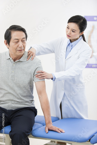 Fototapeta premium Female doctor examining senior patient