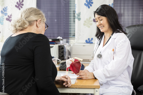 Fototapeta premium Female Doctor Explaining Shoulder Rotator Cuff Model To Senior P