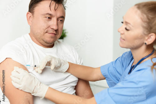 Fototapeta premium female doctor holding an injection to a patient vaccination