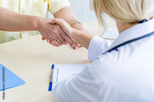 Fototapeta premium Female doctor shaking hand with the elderly male patient.