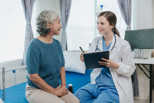 © Witoon, Obraz premium female doctor visiting elderly patients in hospital