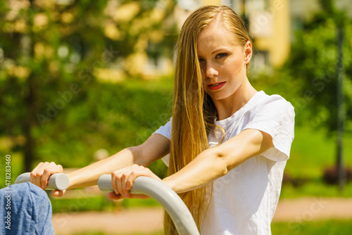 Naklejka premium Female doing exercise in outdoor gym