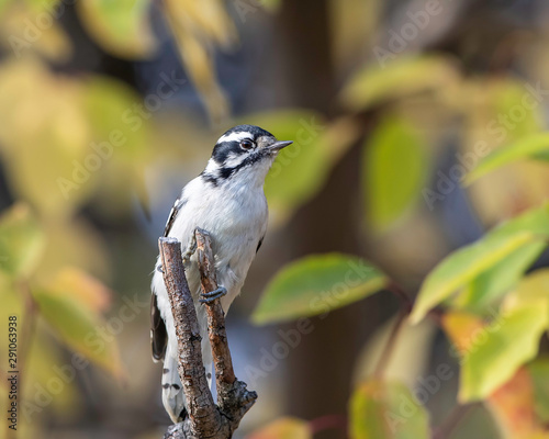 © Dee Carpenter, Naklejka premium Female Downy Woodpecker in Alaska