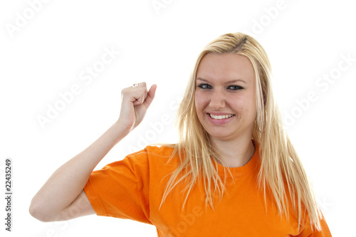 Obraz premium Female dutch soccer fan over white background