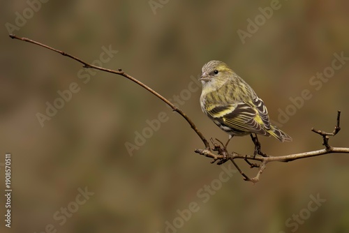 Fototapeta premium Female Eurasian Siskin perched on branch