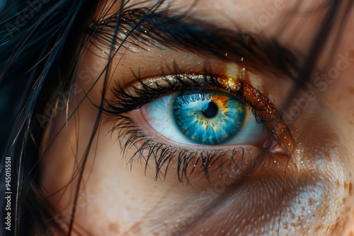 © Poramet, Fototapeta premium Female eye close-up. Macro. Perfect makeup and eyebrows