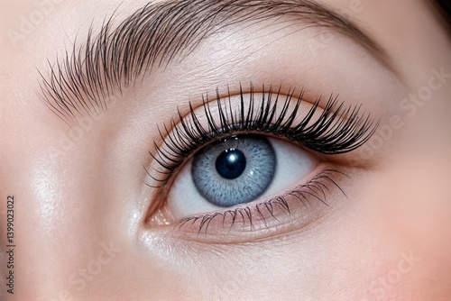 © angutyo, Obraz premium female eye with long eyelashes close-up concept concepto de ojo femenino con pestañas largas en primer plano