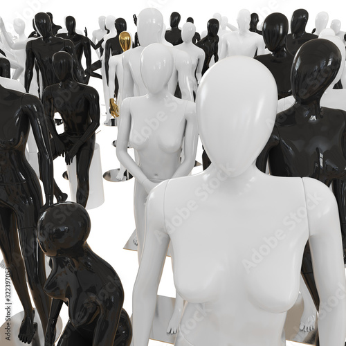 © jockermax3d, Obraz premium Female figure on the background of different mannequins. 3D rendering