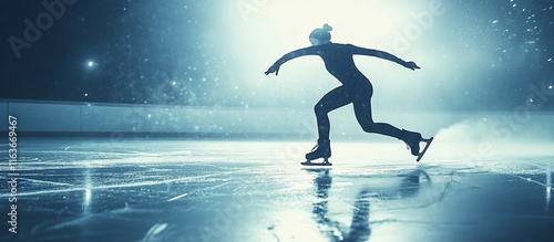 © achmad, Fototapeta premium Female figure skater gliding across ice rink.