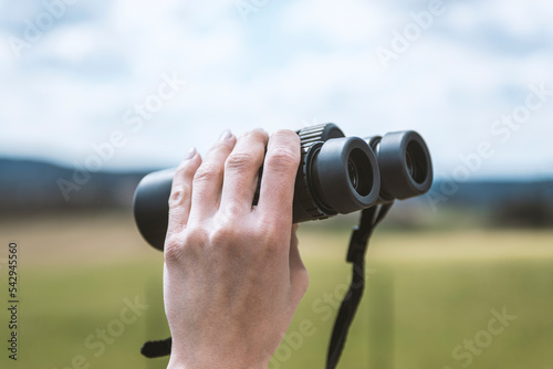 © vigenmnoyan, Obraz premium female hand holding a binoculars .