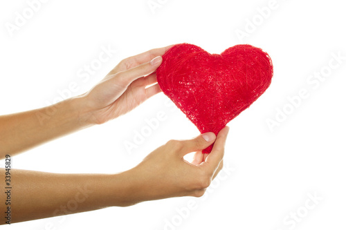 Fototapeta premium Female hands holding a red heart