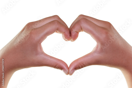 © peefay, Fototapeta premium Female hands in the form of heart isolated on white background