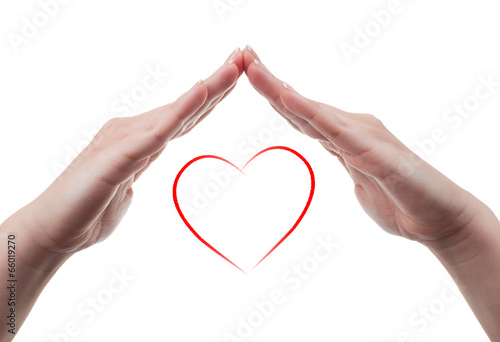 Fototapeta premium Female hands protecting a heart shape on white background