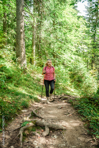 © Dieter Hawlan, Fototapeta premium Female Hiker in a Forest