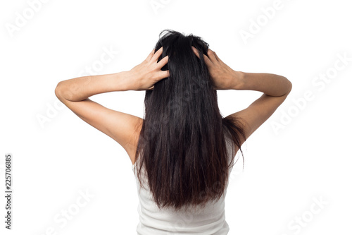© suriya, Fototapeta premium female itching scalp itchy his hair on a white background