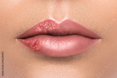© blackday, Fototapeta premium Female lips affected by herpes virus