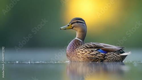 Fototapeta premium Female mallard swimming lake sunset nature wildlife