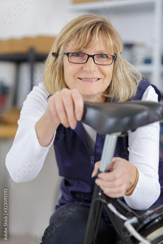 © auremar, Obraz premium female mechanic repairing a bike in a workshop