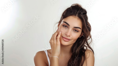 Obraz premium Female model with a refreshing joyful expression, showcasing captivating...
